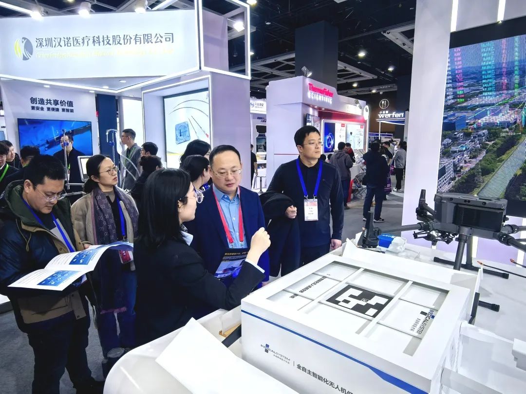 此外,麥迪科技推出的AED救援無(wú)人機(jī)整體解決方案也成為展會(huì)焦點(diǎn)。該方案結(jié)合自研急救飛行控制系統(tǒng)和自動(dòng)體外除顫器 (AED),旨在通過(guò)無(wú)人機(jī)技術(shù)實(shí)現(xiàn)急救資源的快速部署和精準(zhǔn)投送,為急救工作注入全新動(dòng)力。展會(huì)期間,多家醫(yī)院對(duì)這一創(chuàng)新方案給予高度贊譽(yù),稱(chēng)其為急救領(lǐng)域的革新之舉,展現(xiàn)了行業(yè)發(fā)展中的無(wú)限潛力。